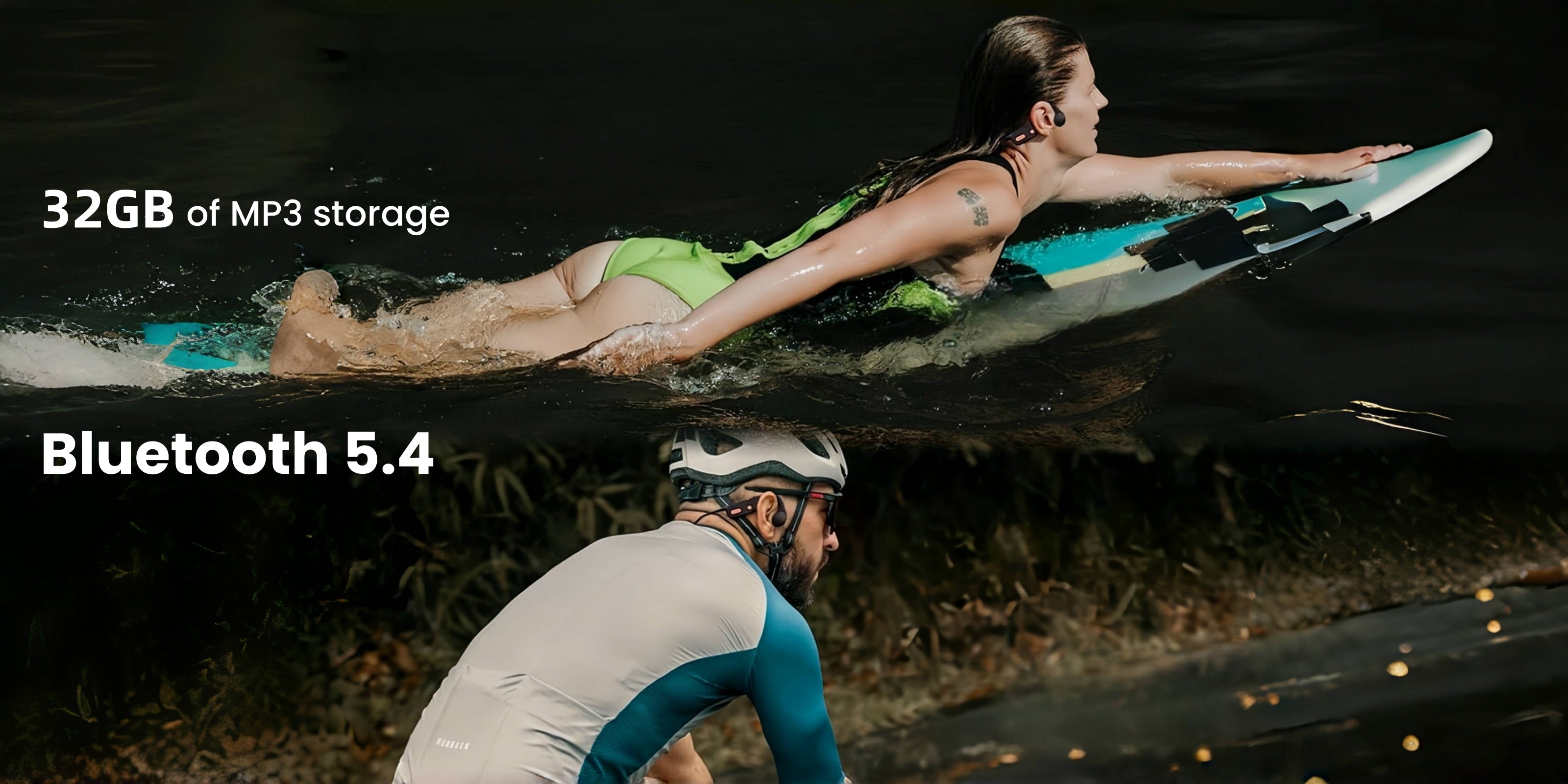 Tayogo bone conduction headphones features fully sealed coating which supports using underwater up to 3 meters. Also this Tayogo IPX8 underwater headphones for swimming has unique MP3 mode which allows you to enjoy music, podcasts, or audiobooks while swimming or other different underwater scenarios.