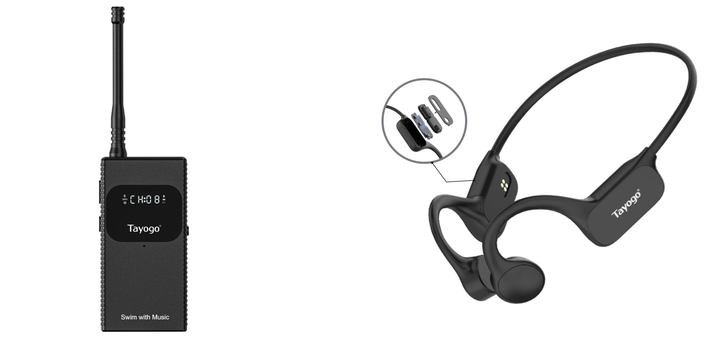 - 3. Receiver headphones – stream from Spotify, YouTube, or Audible underwater when paired with Tayogo T6.