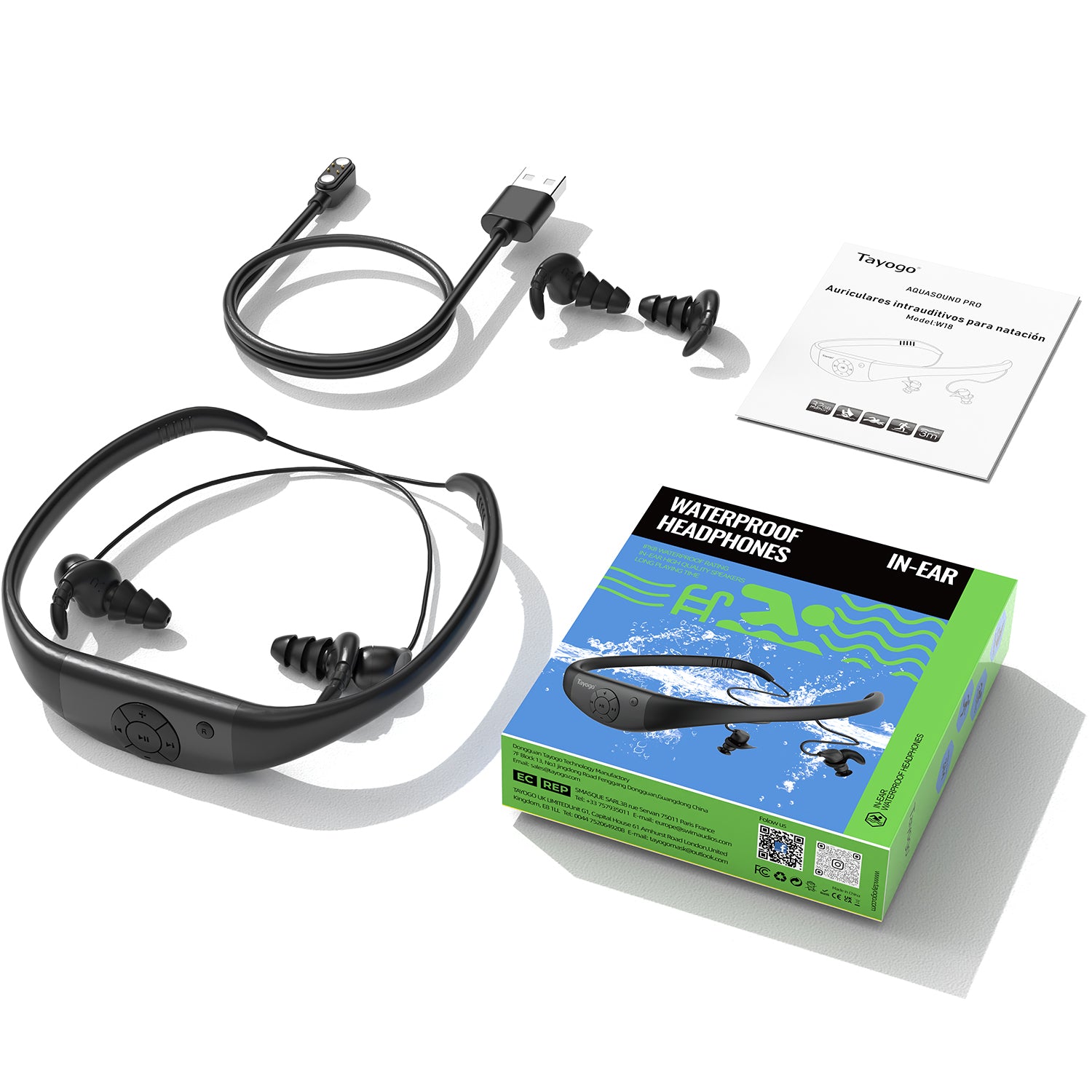 Designed for swimmers, triathletes, and water-sports enthusiasts, the Tayogo Aquasound W18 delivers professional-grade audio underwater and outdoors. One device. Multiple functions. Built for performance.