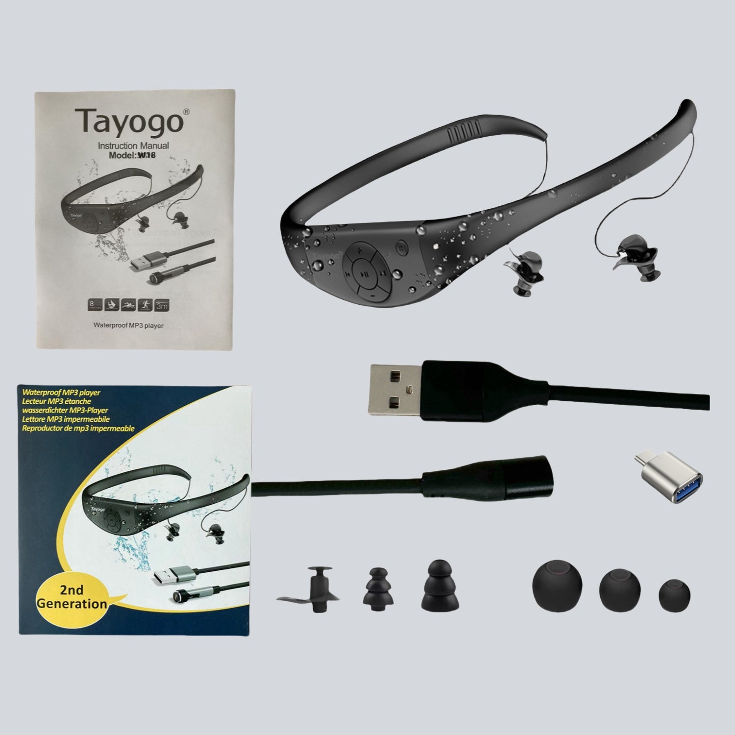Tayogo W18 Waterproof Swimming Headphones with Bluetooth 5.4 and 32GB MP3 Player