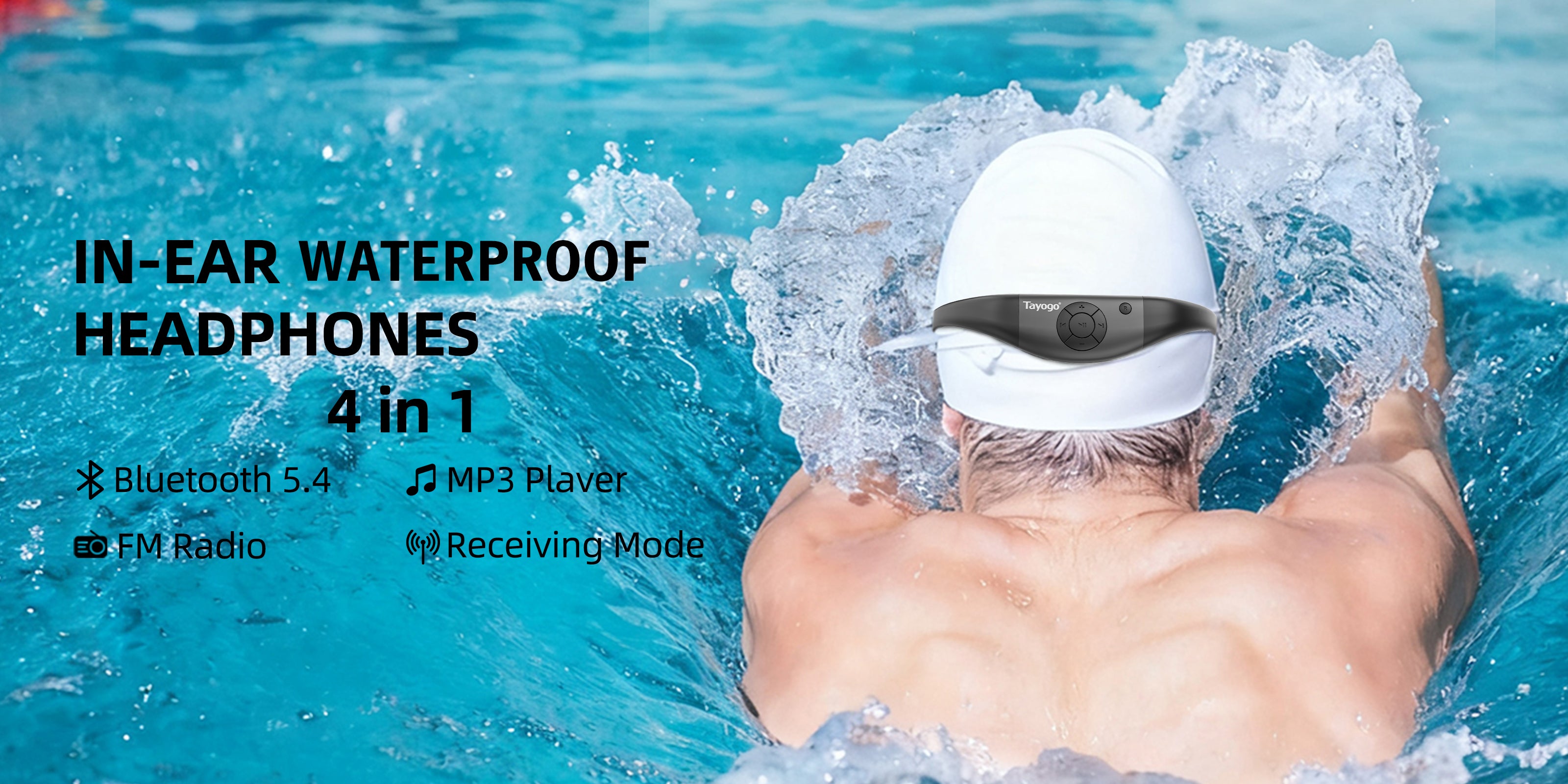 Tayogo AquaSound Pro-W18 Waterproof Swimming Headphones with 32GB Mp3 Playing, Bluetooth, FM, Receiving