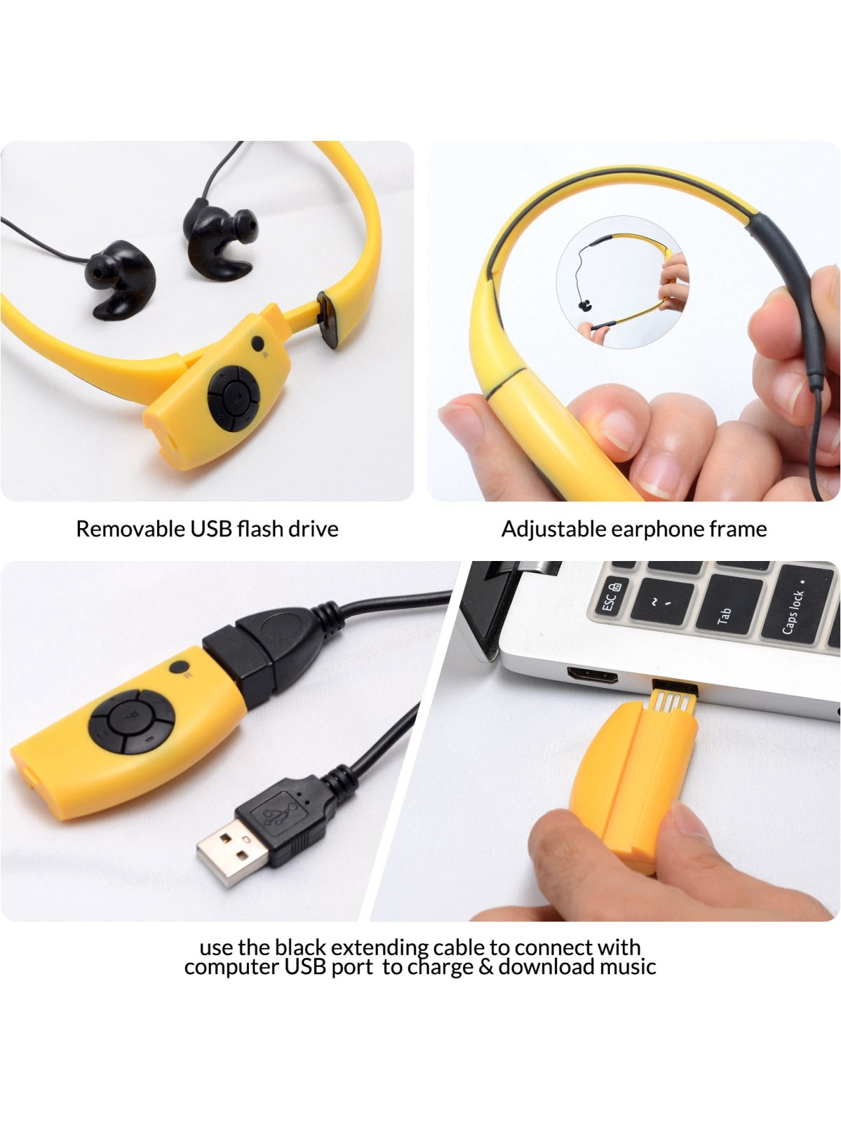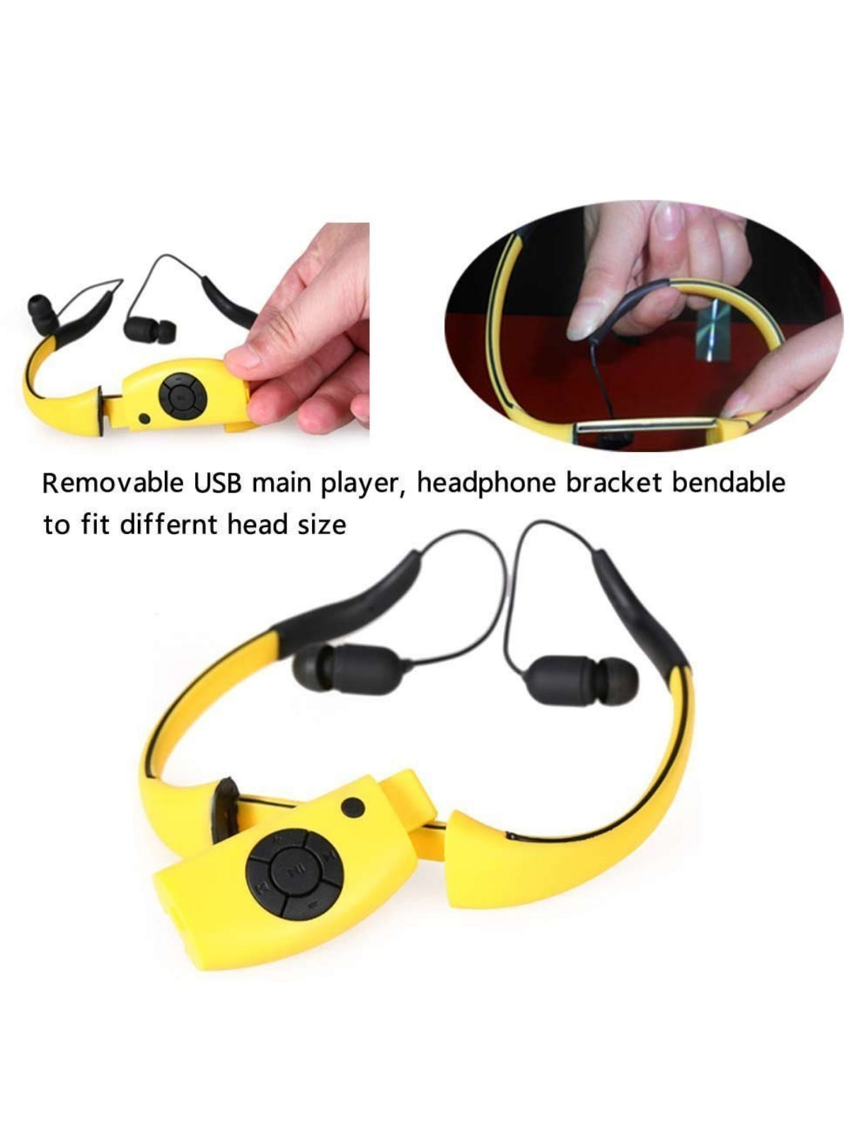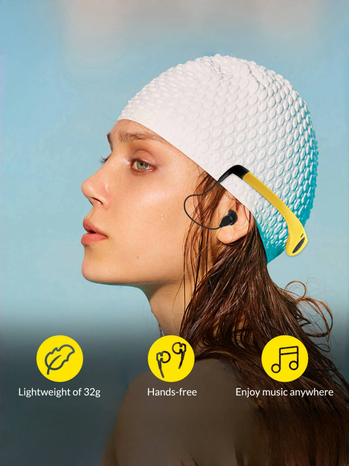 LIGHTWEIGHT AND STABLE Head-Mounted SWIMMING Headphone- This headphone has a dead weight of 32g underwater listening music has no weight-bearing effect The three-pronged triangle on the head-mounted design makes the headset more stable on the head